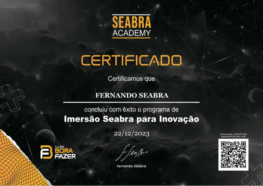 Fernando Seabra é idealizador do Clube BoraFazer, TEDx Speaker, CEO da Seabra Academy, Investidor Anjo e Board Advisor - Pool I.A. da Bossa Invest. É o brasileiro que mais participou como mentor e avaliador de Reality Shows de Startups e Empreendedorismo na TV mundial, com atuação nos programas Shark Tank Brasil, Planeta Startup, Batalha das Startups, Meet the Drapers Brasil, Startup World Cup e Empreender para Vencer.