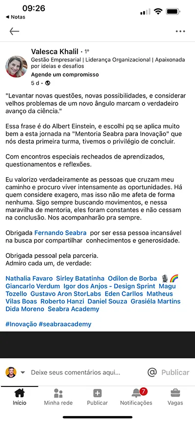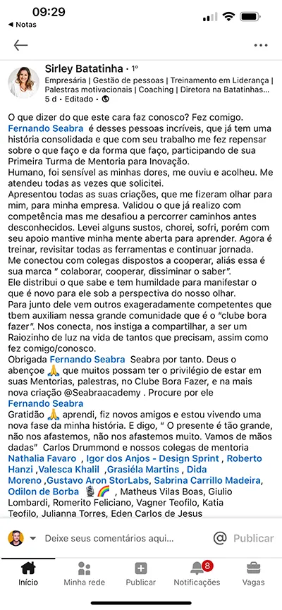O Seabra In Company é um programa revolucionário criado por Fernando Seabra, dedicado a aprimorar a liderança e impulsionar a inovação e o intraempreendedorismo nas organizações.